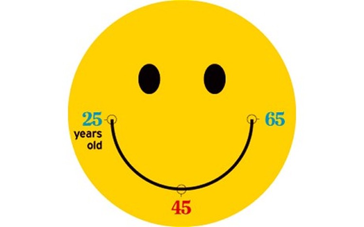 I’d recast the big story from one about dissatisfaction in midlife to one about happiness towards the end of life. That’s the message that American culture drowns out most loudly, although ageism shadows the whole life course. Messages about being “over the hill” at 40 are everywhere you look: greeting cards, advertisements, sitcoms. Internalized and unexamined, the notion that it’s all downhill after 40 makes it all the harder to weather that midlife trough. How much better, indeed, to challenge that absurd notion while we’re still young and to be sustained from then on by the knowledge that with age comes happiness.
