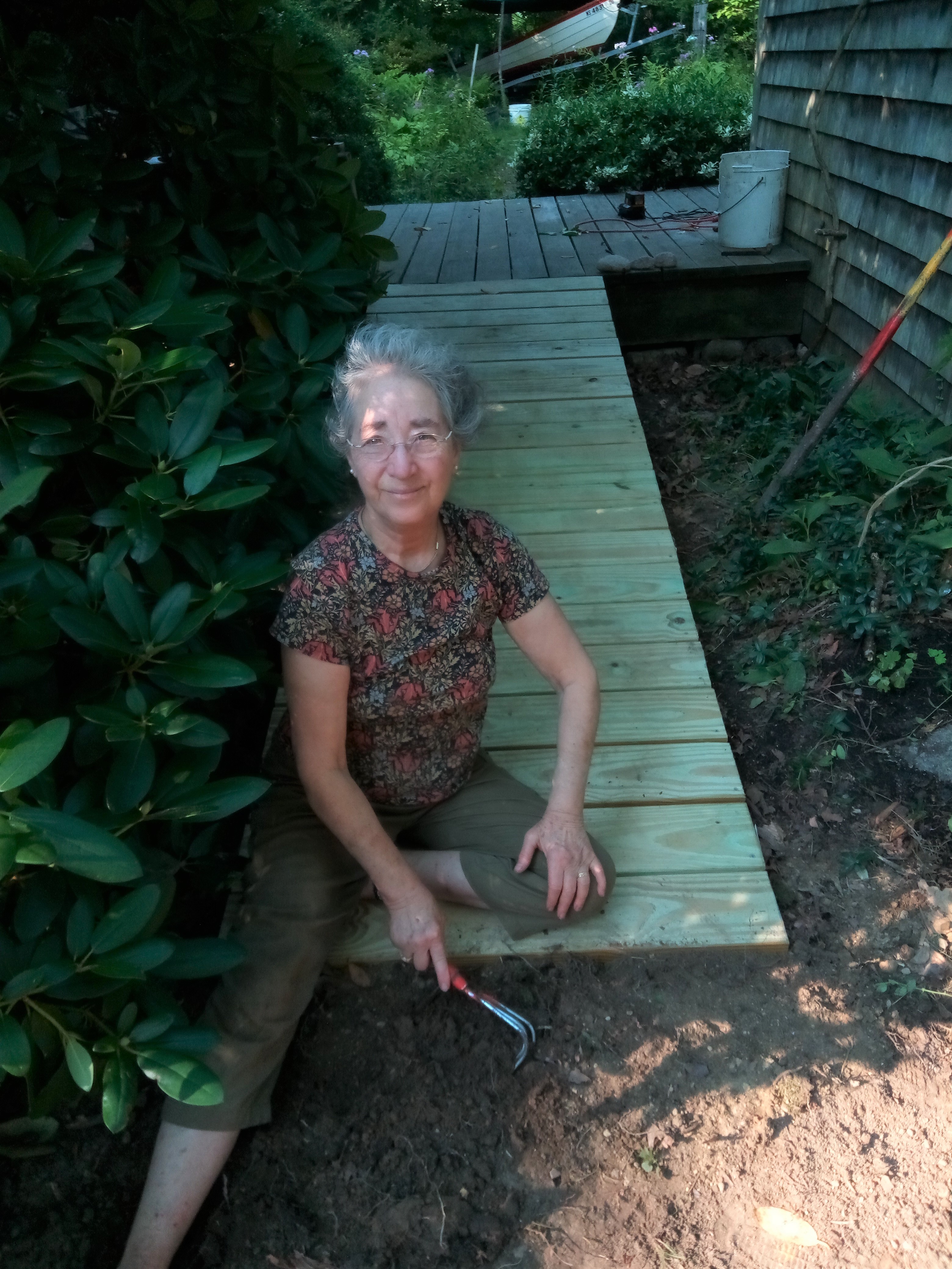 For us, the turning point psychologically came down to a practical matter: we felt capable enough to build the modest structure ourselves without much expense in money or heart’s ease. We are both in our late seventies. Decisions made in health and strength, without haste, with enthusiasm, with joy in the execution, are much easier than those made in a sudden, panicky emergency, as when a bad knee or a broken foot makes going up steps untenable. If only escaping ageism could always be acquired as smoothly as our ramp fit into our lives and spaces.