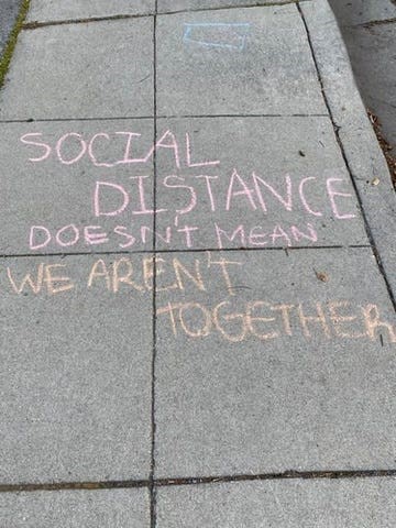 We’ve been advised to keep others at a social distance: no closer than six feet away. I swear, when all this is finally over, I’m going to hug the first 10 people I see.