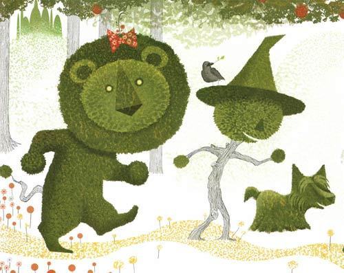 Topiary after topiary represents Grandpa Green’s journey from his farmboy days and schoolyard crushes to World War I and meeting his future wife in a Paris café, to the blooming of both their family and his life as a gardener. The camaraderie between young boy and old man permeates the book. The boy knows where he fits in his family and is at ease as Grandpa’s helper. The great-grandfather accepts the boy’s help with love and his own memory lapses with grace. In the end, their journeys merge as the boy creates his own topiary, his own place, in their garden of family history.