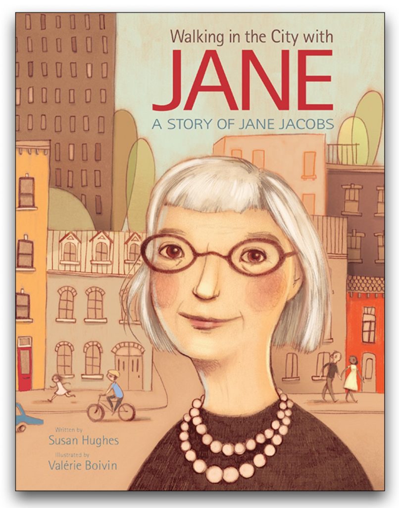 Walking in the City with Jane: A Story of Jane Jacobs Posted in: Ages 3 to 7, Arts, Children's BooksBy Susan Hughes, illustrated by Valérie Boivin – Kids Can Press, 2018